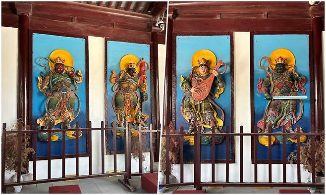천왕문의 사천왕은 손에 들고 있는 것이나 주변 풍경은 우리나라와 마찬가지인데 표정과 모습이 좀 다르게 생겼다.