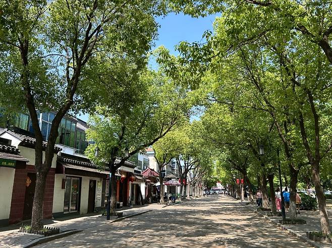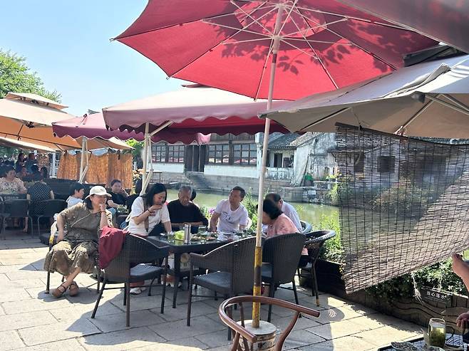 수변으로 상점이 많지는 않지만, 난쉰고진에서처럼 아기자기한 찻집들이 자리하고 있다. 이곳의 2층 건물들은 명·청 시대 때 지어진 것들이라 한다.