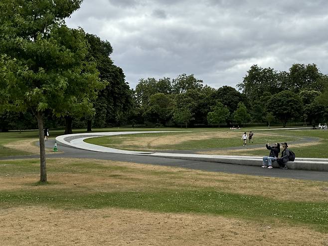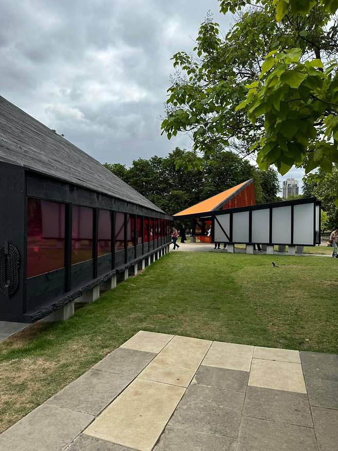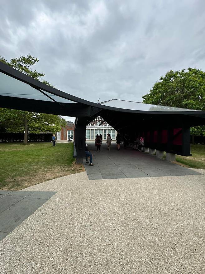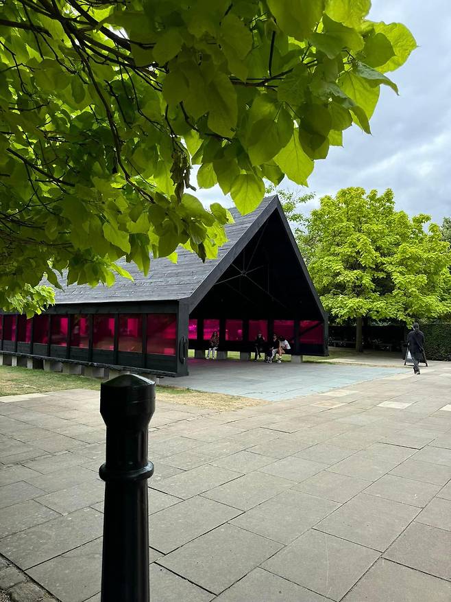 이번 런던 하이드파크에는 런던 서팬타인갤러리 Serpentine Gallery의 2024 파빌리온에 한국의 조민석 건축가 선정되어 그의 작품이 설치가 되어 있다. 그곳에 가보면 우선 서펜타인 갤러리가 공원의 내부에 사람들이 필요로 하는 공간을 얼마나 조심스럽게 자연 속에 할애했는지를 알게 된다.