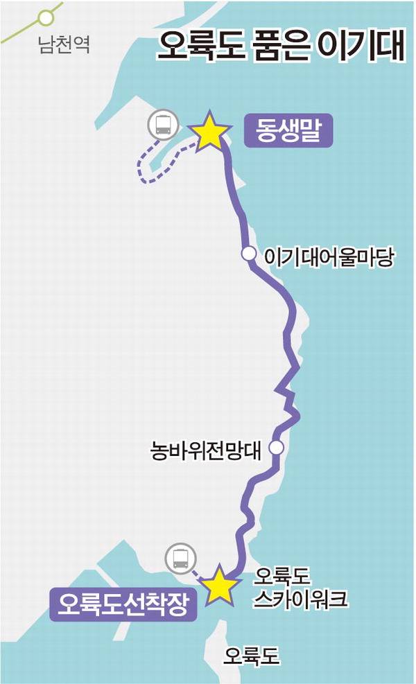 YOLO 5코스의 총길이는 4.5㎞. 같은 구간 갈맷길을 역방향으로 걷는 코스다. 1시간30분 정도 걸린다. 출발지점을 찾아가려면 24번, 27번, 131번 시내버스를 타고 종점인 오륙도스카이워크 정류장에서 내리면 된다. 돌아갈 때는 동생말에서 용호동 분포고교 앞으로 넘어간 뒤 남구 2번 마을버스를 타면 된다. 갈맷길 코스의 정방향으로 걸어도 되지만, 오르막과 내리막길이 자주 반복되는 길의 특성을 고려할 때 역방향 쪽이 훨씬 낫다. 생수와 간식 등은 미리 준비해 가는 게 좋다.