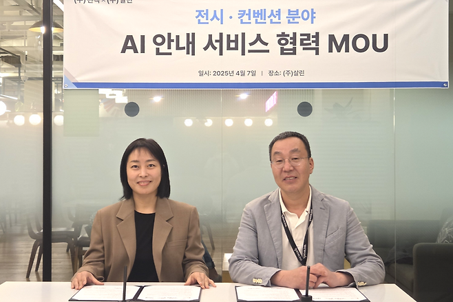 양사는 7일 서울 강남구 살린 본사에서 ‘전시·컨벤션 분야 AI 안내 서비스 협력’ MOU를 체결하고, 살린의 AI Talker 솔루션을 통해 전시 및 컨벤션 산업에 최적화된 관람객 안내 서비스를 공동 개발·제공하기로 했다.