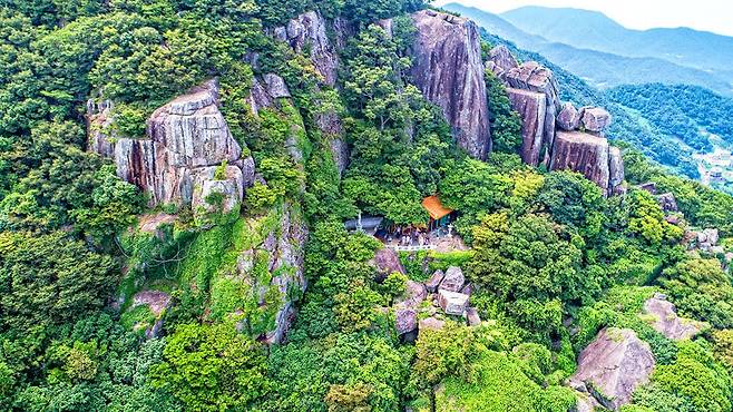 향일암이 자리한 금오산의 형상은 거북이가 경전을 등에 지고 용궁으로 들어가는 모습과 닮아 있다 하여 ‘금오(金鰲)’라는 이름이 붙었다. 바위의 결마저 거북 등껍질과 흡사해 ‘금오암’ 또는 ‘영구암’으로도 불리며, 이곳에 전설과 신비로움을 더한다.