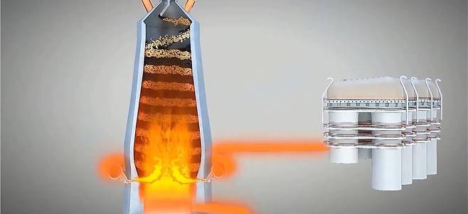 철을 만드는 과정은 크게 ①제선(製銑), ②제강(製鋼), ③압연(製鋼)으로 나뉜다. 제선은 철광석을 녹여 쇳물을 만드는 공정이다. 원산지에서 가져온 철광석과 석탄을 100m 높이의 고로(용광로) 위에서부터 나선형으로 쌓는다. 이후 고로 밑에서 1,200℃의 뜨거운 바람을 불어넣으면 석탄이 타면서 나오는 열로 철광석을 녹여 1,500℃의 시뻘건 쇳물로 바꾼다.