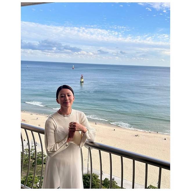 수평선 너머로 부서지는 빛, 잔잔한 파도 소리 사이로 김희애가 선다.