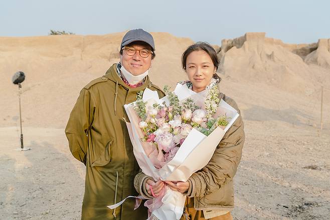 <만추>에 이어 다시 한번 함께한 탕웨이 등 배우들의 마지막 촬영 현장을 축하해준 김태용 감독의 따스한 모습이 눈길을 끈다.