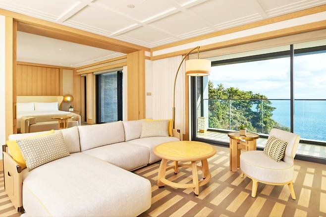 객실에 들어서면 탁 트인 오션뷰를 감상할 수 있는데요. 기본 객실부터 넓은 규모로 이루어져 있어 편안하게 머무를 수 있습니다.