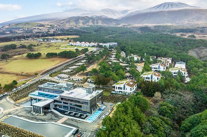 한라산의 절경을 배경으로 삼고 있으며 리조트 앞으로는 드넓은 바다가 한눈에 들어오는데요.