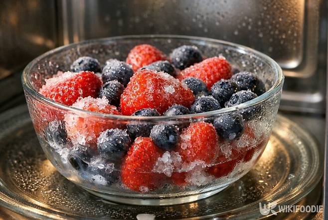 냉동 블루베리나 딸기를 급히 녹이기 위해 전자레인지를 사용하는 경우가 많다. 해동 기능이라도 내부 온도 차가 크다. 표면은 뜨거워지고 중심은 얼어 있는 상태가 된다. 세포 구조가 급격히 파괴되며 과즙이 빠져나온다. 연구에 따르면 전자레인지 해동 과정에서 항산화 성분 일부가 감소하는 경향이 나타났다. 비타민 C 같은 수용성 성분은 열에 취약하다.