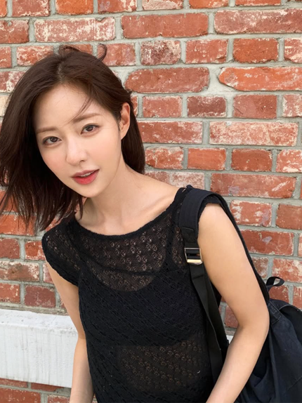 벽돌 배경 앞에서 포착된 이번 사진 속 신슬기는 블랙 시스루 톱에 슬리브리스 이너웨어를 매치해 도회적이고 세련된 분위기를 연출했다.