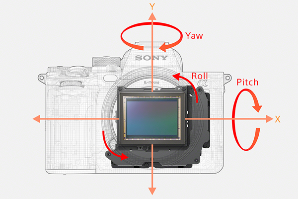 A7R5는 고정밀 손떨림 보정 유닛 및 자이로 센서와 최적화된 알고리즘을 통해 알파 시리즈 사상 최고 수준인 8.0스톱 손떨림 보정을 바디 내에서 실현했다. 촬영 감도를 올리지 않도고 실내나 야경 등의 슬로우 셔터 촬영에 효과를 발휘하며, 전원을 켠 직후나 구도 변화시 보정 응답성도 한층 더 향상됐다.