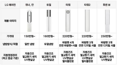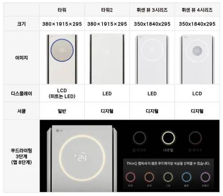 타워 1, 2 / 휘센 뷰는 모델명 구조가 달라짐