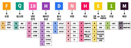 외형 코드 다음이 에어컨 등급자리인데, 알파벳에서 숫자로 바뀌었습니다.