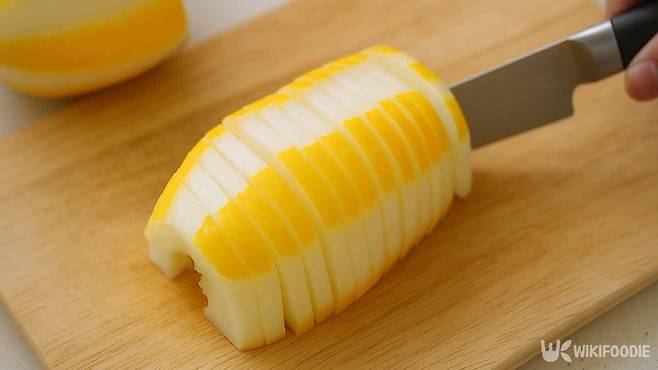 3. 과육은 얇게 슬라이스한다.