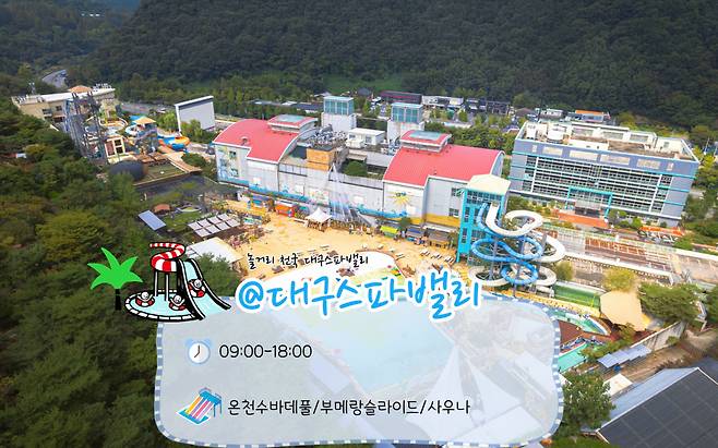 대구 스파밸리는 사계절 내내 즐길 수 있는 워터파크로, 실내·실외 시설이 조화를 이루어 다양한 연련대의 방문객들에게 인기가 많은 여름 휴양지인데요. 어린이풀은 물론 온천수 바데풀, 사우나 등 일상에서 얻은 피로를 개운하게 힐링할 수 있는 시설이 매력적입니다.