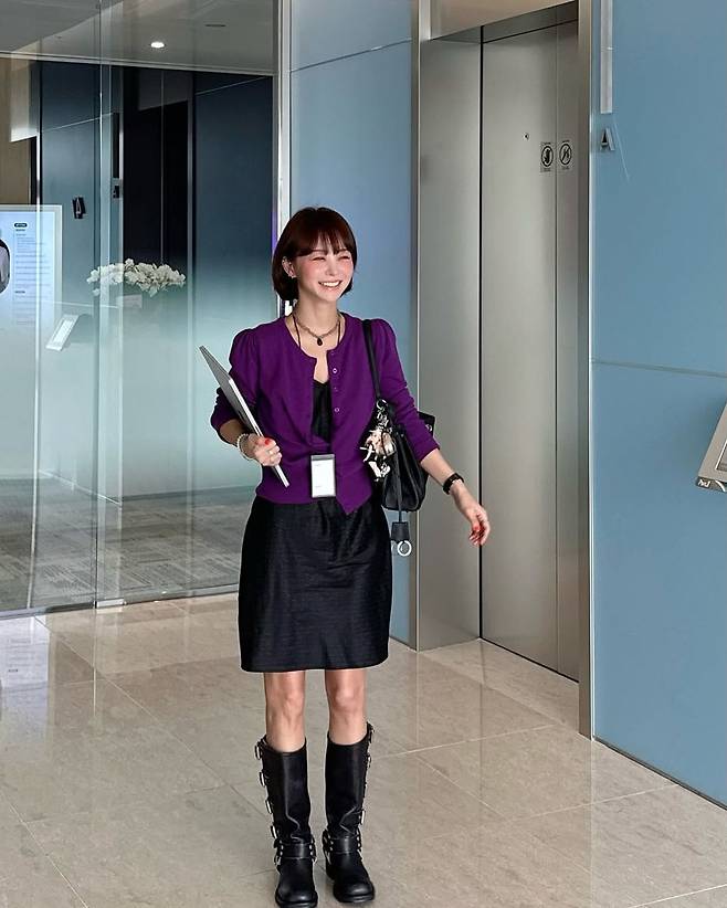 임지현이 인스타그램을 통해 전한 일상 속 스타일링이 눈길을 끈다. 출근길 엘리베이터 앞에서 포착된 그는 퍼플 컬러의 가디건과 블랙 슬립 드레스를 매치해 오피스 룩의 새로운 교본을 제시했다. "출근하면 에너지가 솟는다"는 그의 말처럼, 밝은 표정과 당당한 자세가 스타일에도 힘을 더했다.