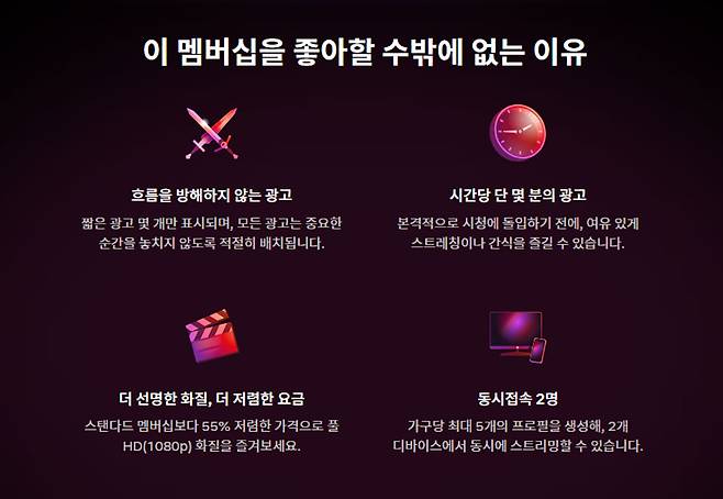 넷플릭스는 이렇게 몰입도를 깨지 않는 것이 광고주 입장에서도 중요하다고 말했는데요. 시청을 방해하지 않은 덕분에 광고형 요금제 이용자들은 월평균 45시간 동안 넷플릭스를 볼 정도로 집중도가 높다는 거예요. 게다가 넷플릭스는 콘텐츠와 광고 상품 그리고 서비스를 연결하는 형태로 광고가 이뤄져요. 최대한 거부감 없는 자연스러운 광고인 셈이죠. 한편, 넷플릭스는 올해 2분기부터 광고기술 서비스 ‘애드테크’를 출시해 AI를 활용한 맞춤형 광고를 선보일 예정이에요.