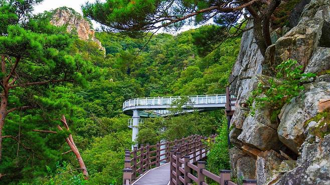 승강장에서 이어지는 데크 산책길은 왕복 20~30분 정도 소요되는 완만한 경사로 조성되어 남녀노소 누구나 부담 없이 숲의 정취를 만끽하기 좋습니다.