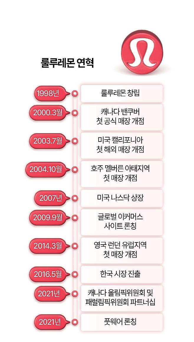 빅토리아시크릿의 편지를 받은 그해 룰루레몬은 호주 멜버른에 아태지역 첫 매장을 열게 된다. 유럽과 아시아에 첫 발을 내딛는 것은 2014년(영국 런던·싱가포르)의 일이다. 한국에는 2016년 5월 서울 청담동에 첫 매장을 열며 진출하게 된다. 그 사이 룰루레몬은 2011년부터 2018년까지 매년 10% 이상 성장하며 여성 기능성 의류 시장의 95%를 장악했다. 2025년 10월 현재 룰루레몬은 전 세계 20여개국에 걸쳐 784개의 매장을 운영하는 거대 브랜드로 성장했다. 기업가치로 따지면 전 세계 스포츠 브랜드 중 다섯 손가락 안에 든다. 룰루레몬의 시가총액은 200억달러를 넘는다. 룰루레몬보다 위에 있는 기업은 나이키와 아디다스, 중국의 안타스포츠 정도밖에 되지 않는다. 아식스, 스케처스, 언더아머, 푸마 등 보다 많은 소비자들에게 친숙한 브랜드를 웃도는 규모다.