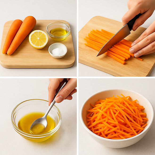 당근 2개, 레몬 1/2개, 올리브오일 2큰술, 소금 약간