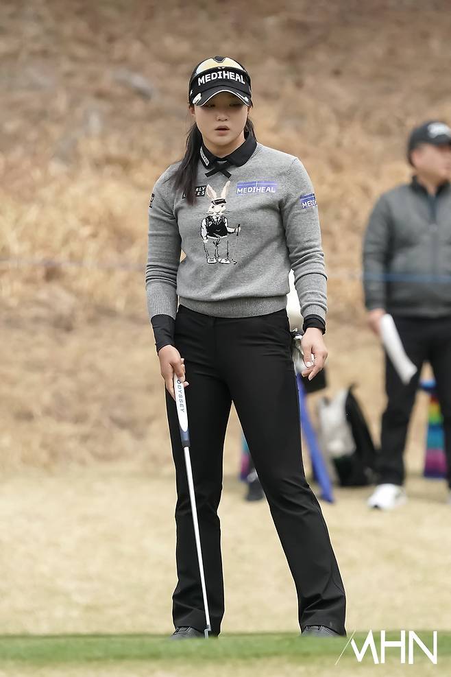 정지효(메디힐)가 2번홀 경기를 펼치고 있다.