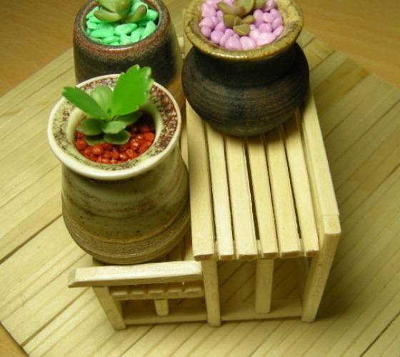 나무젓가락을 바닥에 11자 형태로 놓고 교차해 받침을 만들면 화분 아래 공간을 확보할 수 있다.