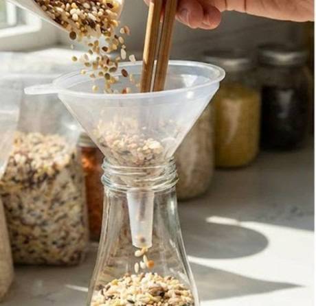 곡물이나 고운 가루를 병에 옮길 때 깔때기가 막히는 경우가 많다.
