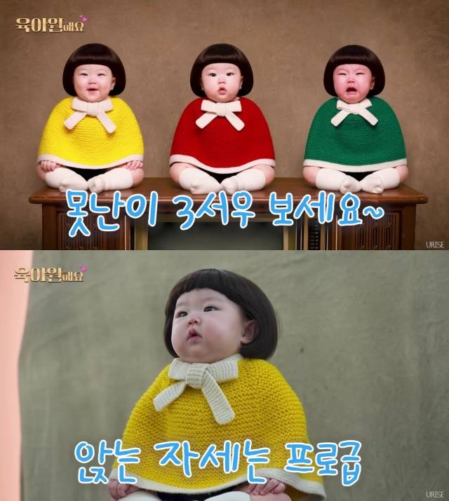 웃는 얼굴, 무표정, 우는 얼굴 세 가지 콘셉트로 준비된 촬영에서 딸은 낯선 공간에서도 편안한 모습을 보였고, 빨간 망토를 두른 장면에서는 인형 같은 귀여움으로 시선을 끌었다.