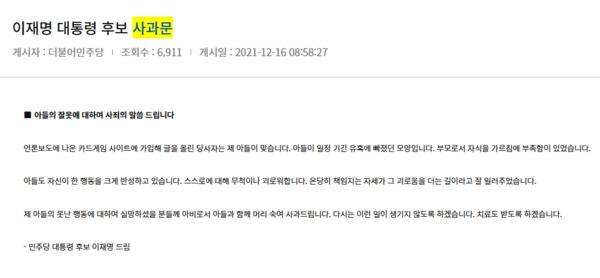 이재명 아들, 음란글 전시 등으로 벌금 500만 원 확정