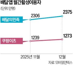 실제 최근 배달앱 시장에서는 배달의민족 이용자 반등이 감지된다. 모바일인덱스에 따르면 지난달 배달의민족 월간활성이용자(MAU)는 2375만 명으로 전달(2306만 명)보다 70만 명가량 순증했다. 같은 기간 쿠팡이츠 MAU가 1239만 명에서 1273만 명으로 약 34만 명 증가하는 데 그친 것과 비교된다.