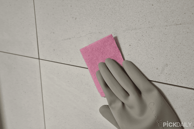 주방세제는 기름기나 유분기 제거에 효과적이다. 또한 매직블럭은 세밀한 연마제 작용을 해 두텁게 쌓인 유막 얼룩도 손쉽게 제거하도록 도와준다. 아트월과 아트월 사이엔 틈이 있기 때문에 블럭별로 하나씩 닦아주면 좋다. 틈 사이로 물이 흐르지 않도록 매직블럭의 물기를 적당히 조절해주면 좋다.