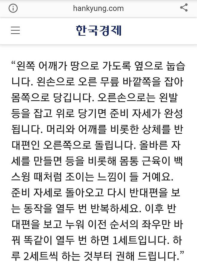 세트도 설명에 적힌 거 그대로 하지말고 내 몸이 너무 뻣뻣해서 아프다면 그보다 적은 횟수로 하다가 천천히 늘리는 게 좋아