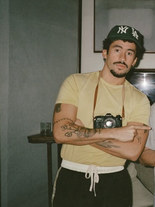 심플하면서도 가장 스타일리시하게 연출하는 방법을 알고 있는 그의 필수 아이템은 다름아닌 흰색 무지 티셔츠다. 첫 번째 룩에서는 브라운 톤온톤을 바탕으로 고딕 스타일의 볼드한 벨트와 액세서리로 포인트를 더했다. 특히, 캘빈 클라인 쇼에 참석한 룩에서 배드 버니의 패션 센스를 알 수 있다. 자칫 너무 심플해질 수도 있는 블랙 테일러드 수트 셋업 안에 셔츠가 아닌 무지 티셔츠를 매치, 덕분에 캐주얼하면서도 스타일리시한 룩이 탄생했다. 세 번째 룩에서는 레몬 색의 무지 티셔츠와 트레이닝 팬츠, 모자로 편안하면서도 색감이 매력적인 룩을 선보였다.