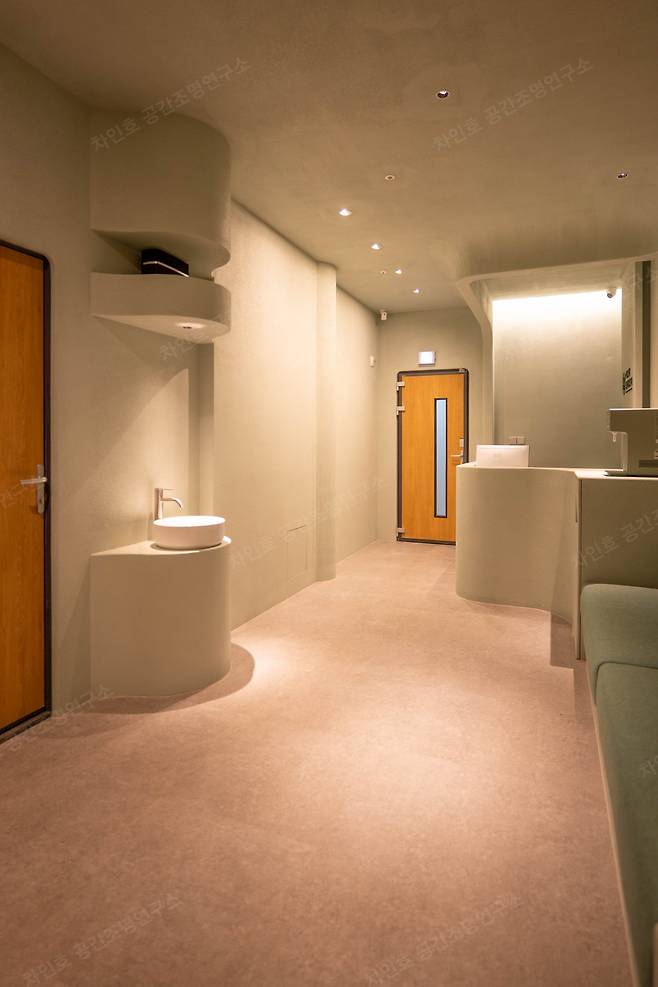 CMF(Color, Material, Finish) 분석이라 하여 즉 색상, 소재, 질감에 따른 휘도와 공간 인상의 변화를 설계에 면밀하게 적용할 수 있어야 한다. 그래서 필자의 차인호 공간조명연구소에서는 조명공간의 완성도를 높이기 위해 전문적인 CMF 팀을 운영하고 있다. 이것은 공간의 휘도와 밀접한 관계가 있기에 같은 공간에 동일한 조명을 사용하더라도 CMF 분석과 설계의 차이에 따라 전혀 다른 공간을 연출하는 것이 가능하다.
