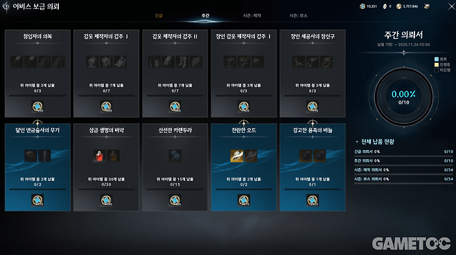 흔히들 일일, 주간 퀘스트로 지칭되는 숙제들은 짧은 시간에 효율적인 보상들을 얻을 수 있으므로 성장에 매우 중요하다.
