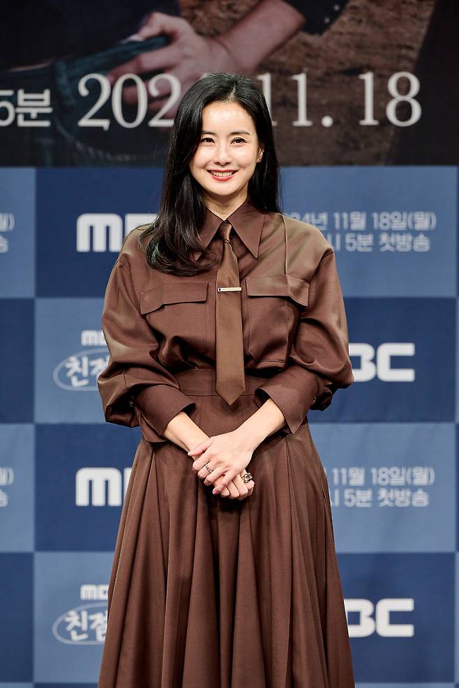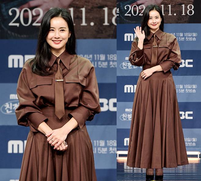 배우 최정윤이 세련된 브라운 셔츠 드레스를 착용해 단아한 매력을 발산했습니다.