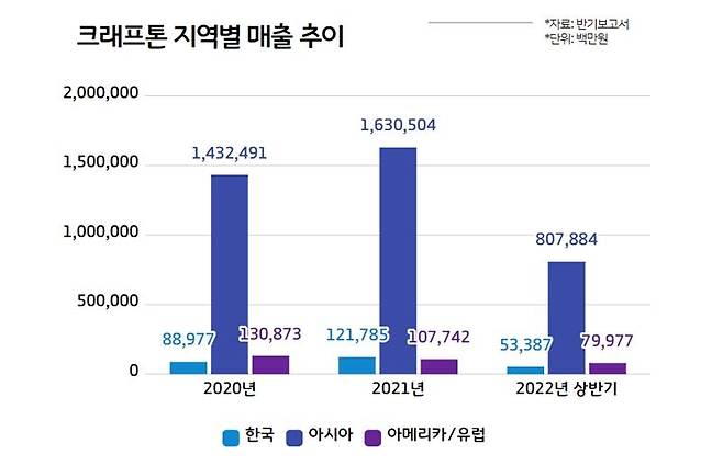 칼리스토 프로토콜 판매량에 따라 크래프톤의 수익 모델에도 변화가 생길 전망이다. 크래프톤은 현재 '플레이어 언노운스 배틀그라운드(이하 배그)' IP를 통한 수익 의존도가 높은 만큼 칼리스토 프로토콜을 비롯한 대형 신작 개발에 주력하고 있다. 크래프톤은 북미·서구권을 겨냥한 칼리스토 프로토콜이 상대적으로 낮은 아메리카·유럽 지역 매출을 끌어올려줄 것으로 기대하고 있다. 실제로 올 상반기 기준 크래프톤의 아메리카·유럽 매출은 약 800억원으로, 아시아 지역(약 8079억원)의 10분의 1 수준이다.