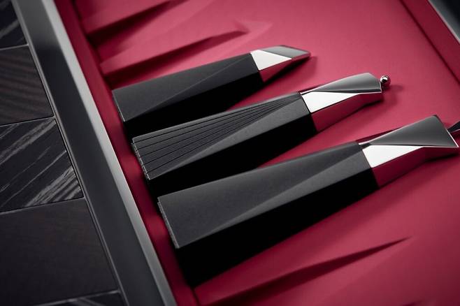롤스로이스가 만든 체스판은 단순한 게임 도구의 수준을 넘어 예술 작품에 가깝다. 체스판은 전통적인 평평한 형태가 아니라, 하단으로 갈수록 좁아지는 역사다리꼴 구조를 채택해, 옆에서 보면 마치 판이 공중에 떠 있는 듯한 시각적 효과를 준다. 전면과 후면에는 롤스로이스를 상징하는 ‘환희의 여신상(Spirit of Ecstasy)’ 엠블럼이 정교하게 새겨져 고급스러움을 더한다.