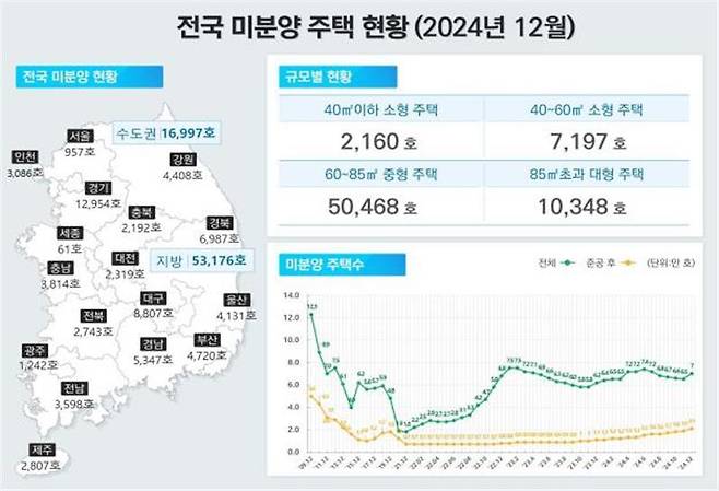 국토교통부가 5일 발표한 '2024년 12월 주택통계'에 따르면 지난달 말 기준 전국 미분양 주택은 7만173가구로 집계됐다.