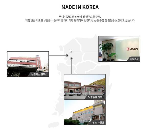 실적도 좋습니다. 잡코리아에 따르면 정규 직원은 50명에 불과한데 한 해 매출은 450억 원에서 500억 원을 넘나듭니다. 영업 이익은 한 해 100억 가까이 올리며 20% 가까운 영업이익률을 올리기도 하죠. 더 놀라운 것은 JMW는 모든 제품을 국내에서 직접 제조·생산·관리한다는 것입니다. 일명 ‘Made in Korea’입니다. 많은 기업이 원가 절감을 위해 해외 공장을 이용하는 것과 다른 모습입니다.