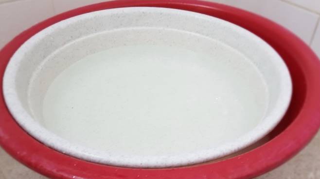 대야에 준비한 것을 모두 넣고 수돗물을 최대한 뜨겁게 틀어 주세요. 슬리퍼가 잠길 수 있을 만큼 물을 받아 줍니다.