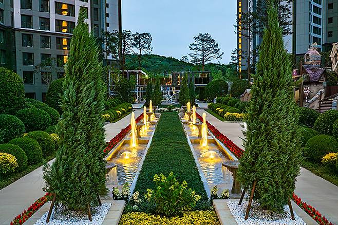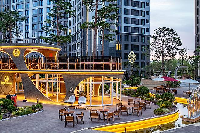 DK아시아는 약 6만 6,000㎡ 규모의 테마공원을 조망할 수 있도록 식사 공간에 넓은 테라스를 배치했으며 해당 서비스는 입주민 하루 1만 원, 외부 방문객 1만 3,000원에 이용이 가능하다. 하지만 일각에서는 이러한 고급 커뮤니티와 서비스에 대해 향후 입주민들의 관리비 부담이 커질 수 있다는 우려를 제기하기도 했다.
