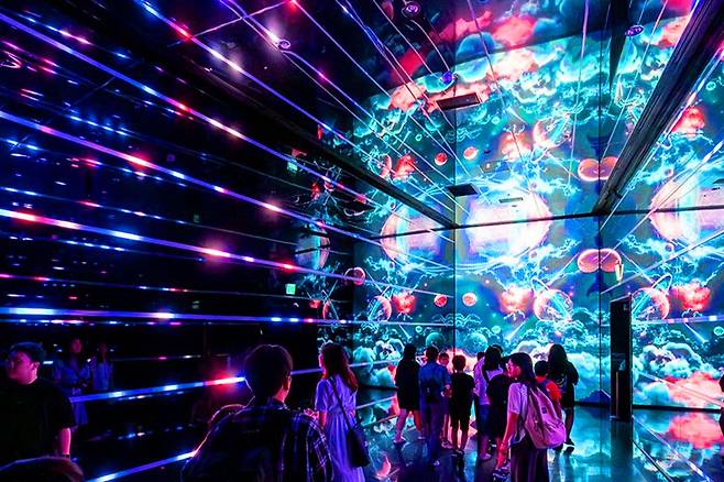 미스터리, 판타지, 파티 등 총 9개 테마 공간으로 나뉘어져 있고 대형 스크린과 조명, 거울을 활용한 다채로운 작품을 선보입니다.