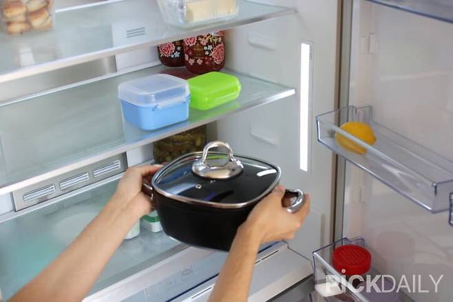 큰 냄비째로 두면 중심부가 천천히 식어 균이 번식하기 좋다. 작은 그릇에 소분하거나, 찬물을 채운 싱크대에 냄비를 담가 최대한 빨리 식힌 후 냉장고에 넣어야 한다.