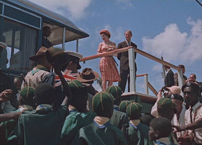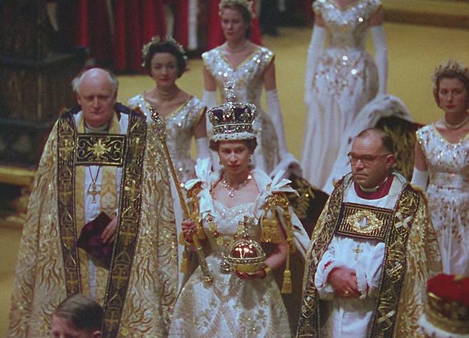 대관식 당일 보랏빛 왕관을 쓰고 여왕봉을 든 모습부터 남편인 필립 공과 선박에 올라 미소를 지으면서 국민과 인사하는 모습이 시선을 끈다.