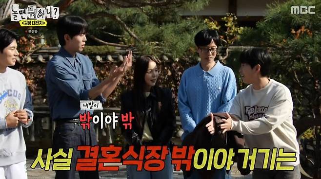 이날 오프닝에서 ‘원탑’의 멤버로 ‘놀뭐’와 함께했던 조세호의 결혼식이 화두가 된 가운데 이미주는 “결혼식장 주변에 사람이 너무 많아서 뛰어가야 했다”면서 생생한 현장 분위기를 전했다.