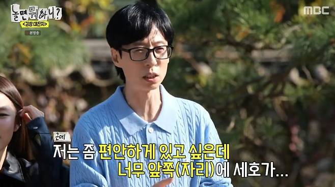 반면 ‘명당’ 자리에 앉았던 유재석은 “난 편안하게 있고 싶었는데 조세호가 너무 앞쪽으로 자리를 줬다”면서 그만의 고충을 전했다.