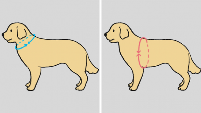 강아지가 목줄 및 하네스를 멨을 때, 손가락 2~3개 정도가 들어갈 정도의 여유가 있는 사이즈의 제품을 사용하는 게 가장 좋습니다.