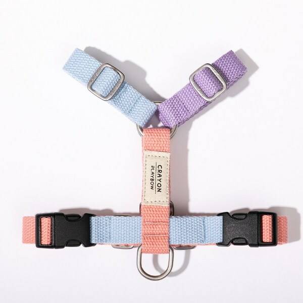 파스텔톤 분홍색, 하늘색, 보라색 세 가지 색상이 섞여 있어 귀여운 느낌을 주는 H형 강아지 하네스입니다. 총 10가지 색상이 있어 선택의 폭이 넓답니다. 다리를 들지 않아도 멜 수 있어서 편리해요.