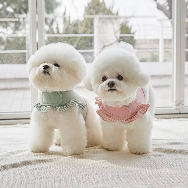 귀여운 색상과 체크 패턴으로 옷처럼 입힐 수 있는 사랑스러운 디자인의 강아지 하네스입니다. 리버시블 제품이라 두 가지 타입으로 입힐 수 있어 활용성이 좋아요. 신축성은 없지만 찍찍이(벨크로)가 있어 약간의 사이즈 조절이 가능합니다. 단, 버클이 없는 제품이라 자칫하면 풀릴 수 있다는 점은 아쉬워요.