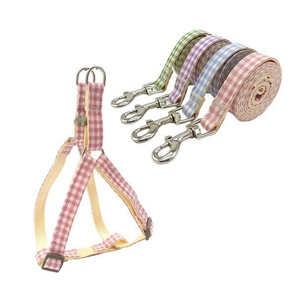 귀여운 체크 패턴의 강아지 Y형 하네스와 리드줄이 세트인 제품이에요. 색상은 핑크, 그린, 블루, 옐로우, 퍼플 5가지로 다양합니다. 위 제품은 S사이즈 제품으로 강아지 가슴둘레가 32~46cm 사이인 중소형견 강아지용으로 추천해요.